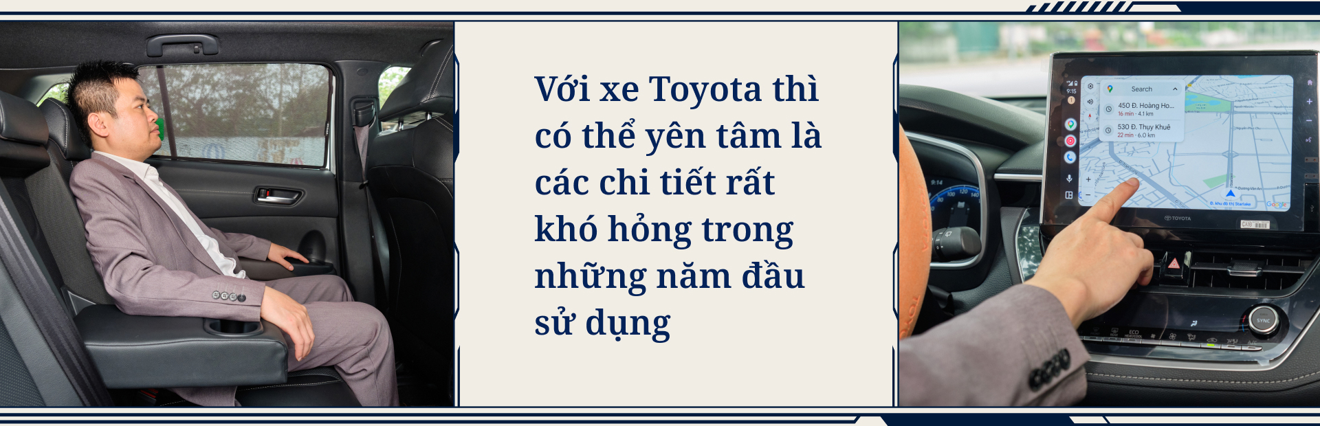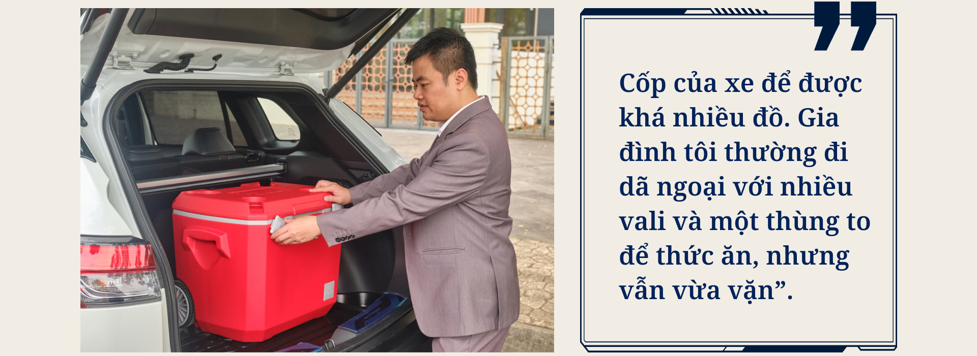 Xét về trang bị trên tầm tiền, anh Khôi đánh giá cao Corolla Cross HEV. “Tôi thấy xe có đầy đủ tính năng, từ gương điện, ghế điện cho tới đá cốp, công nghệ an toàn chủ động. Một trong những tính năng tôi thích đó là điều hòa tự động hai vùng độc lập, phù hợp với những nhà có con nhỏ như gia đình tôi”.